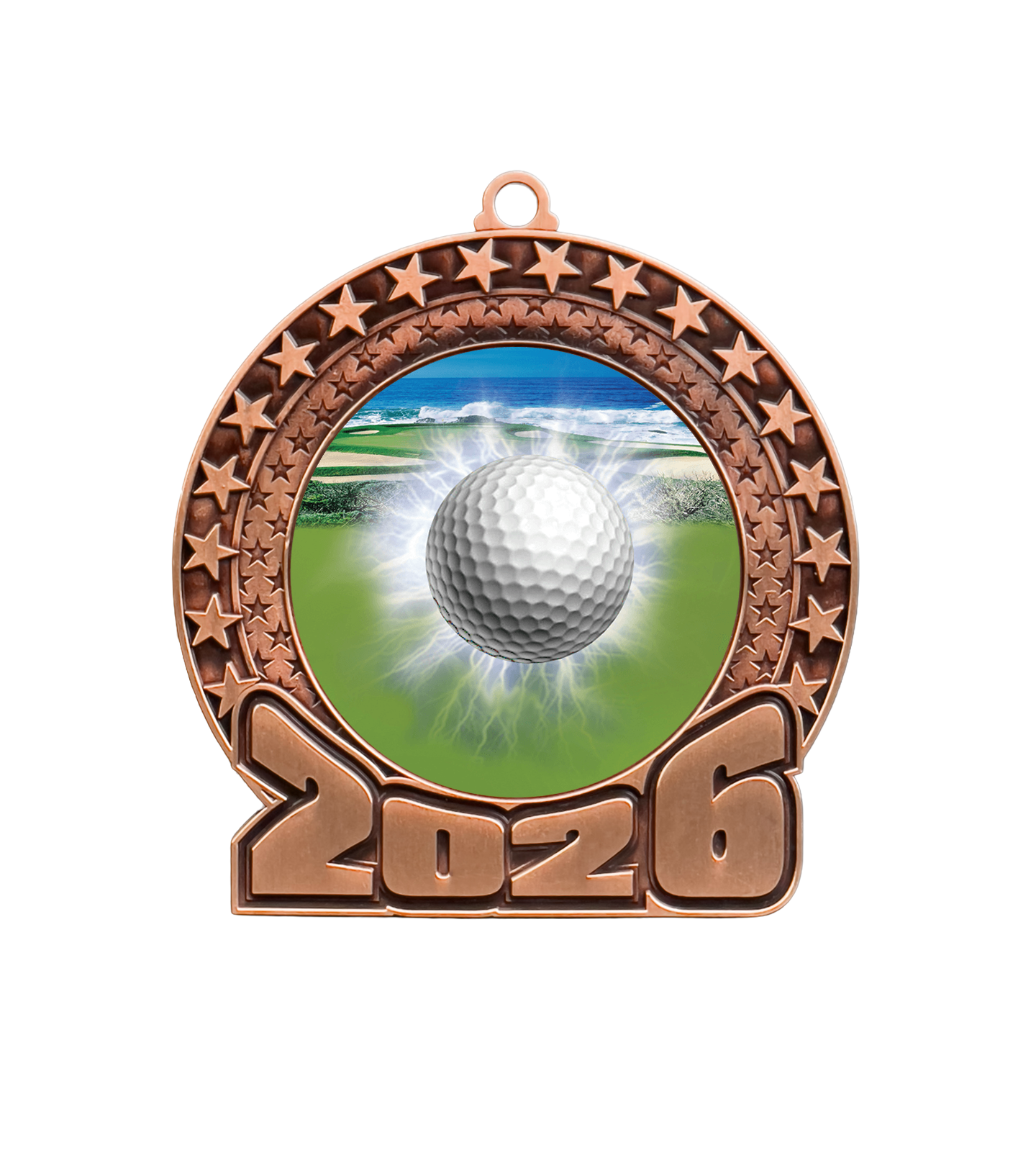 Our 2026 Golf Insert Medals are a Low Priced Custom Medal that can be customized with any one of our Golf stickers. This 2026 medal comes with a laminated insert sticker. Make 2026 a year defined by victory and achievement.