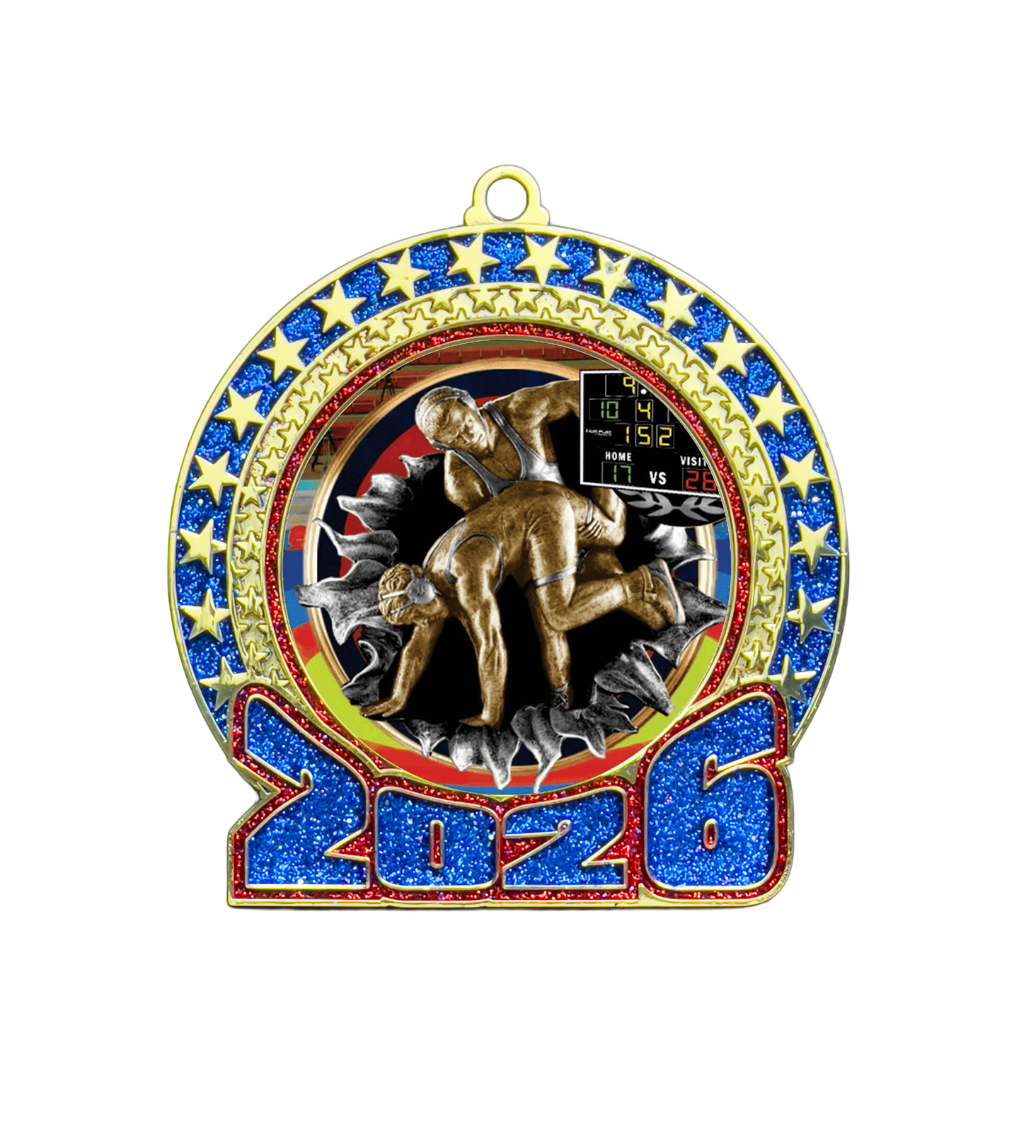 2026 Red and Blue Glitter Wrestling Insert Medal
