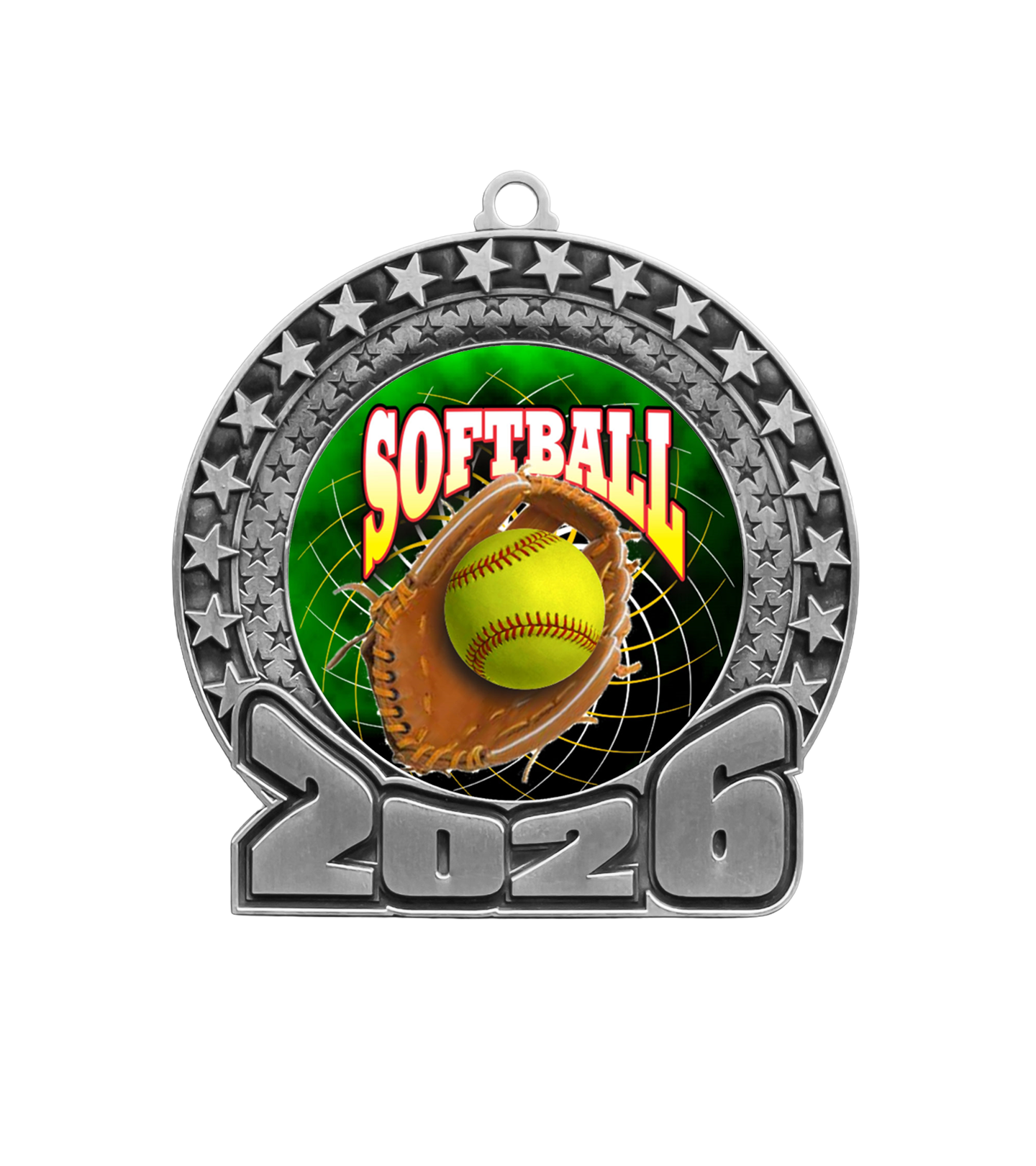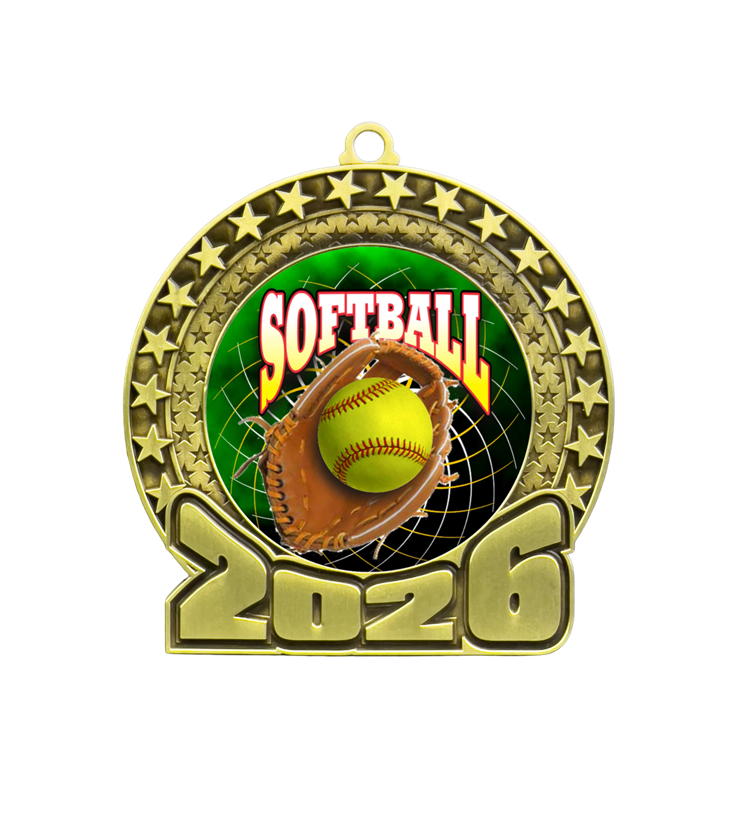 Our 2026 Softball Insert Medals are a Low Priced Custom Medal that can be customized with any one of our Softball stickers. This 2026 medal comes with a laminated insert sticker. Make 2026 a year defined by victory and achievement.