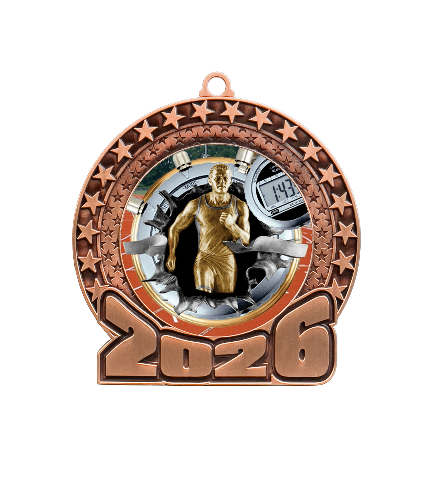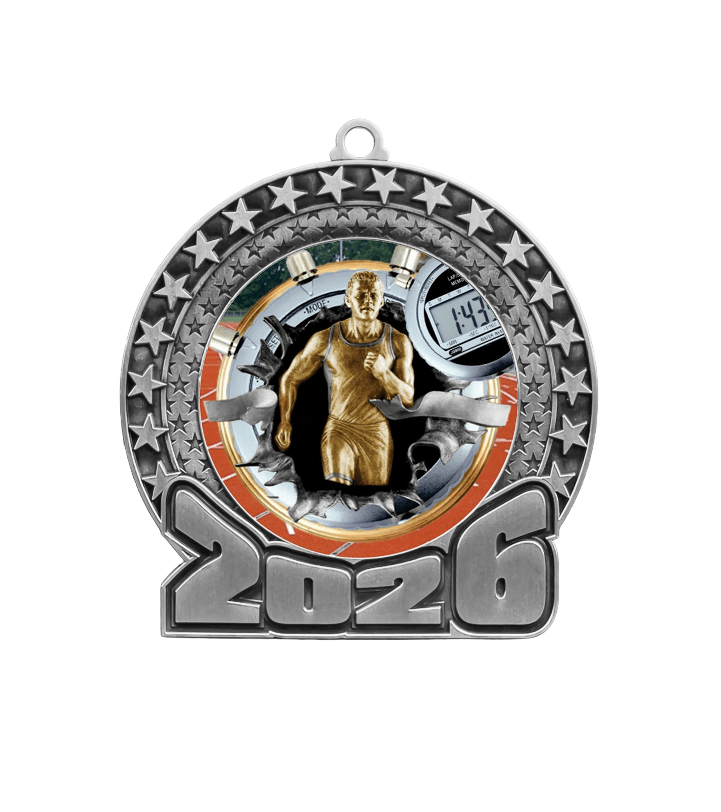 Our 2026 Track Insert Medals are a Low Priced Custom Medal that can be customized with any one of our track stickers. This 2026 medal comes with a laminated insert sticker. Make 2026 a year defined by victory and achievement.