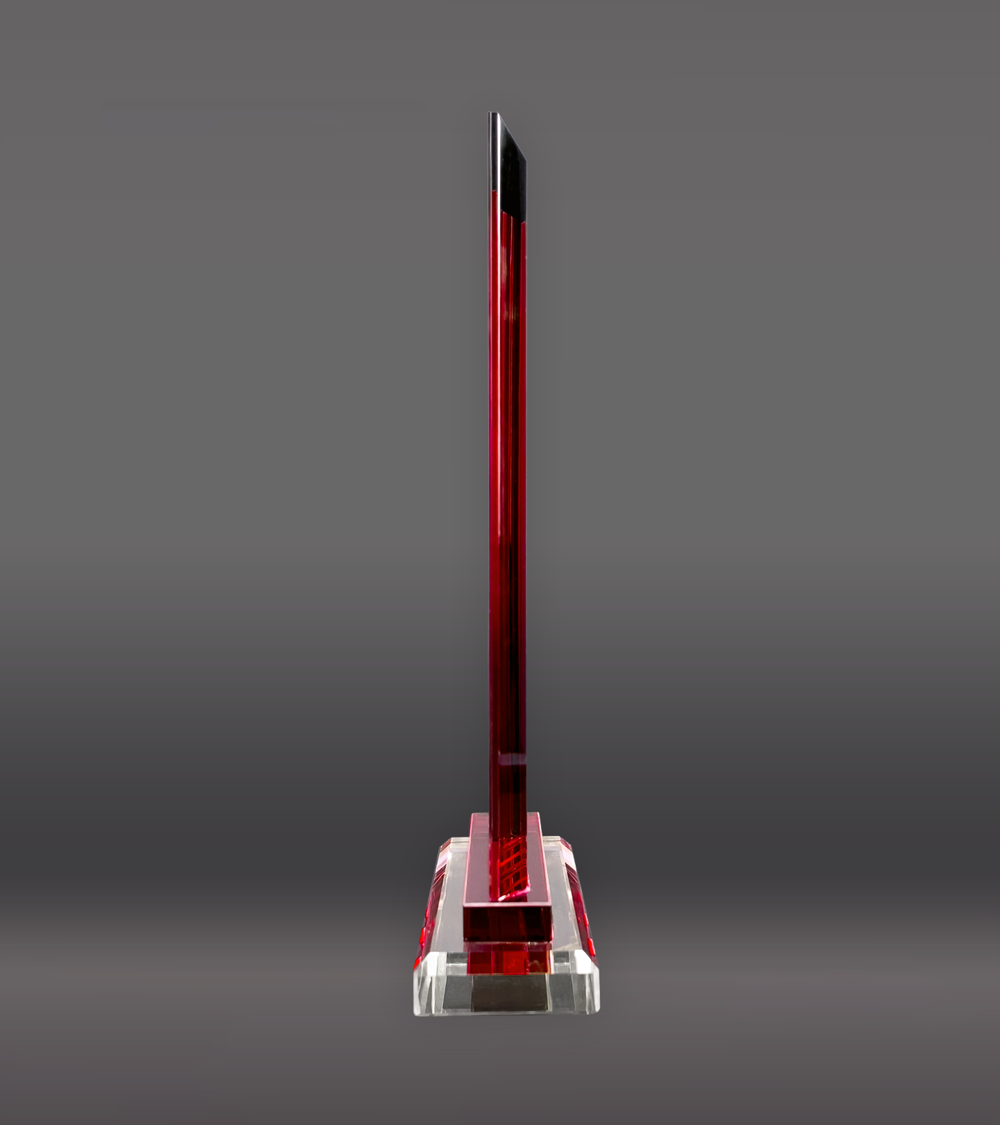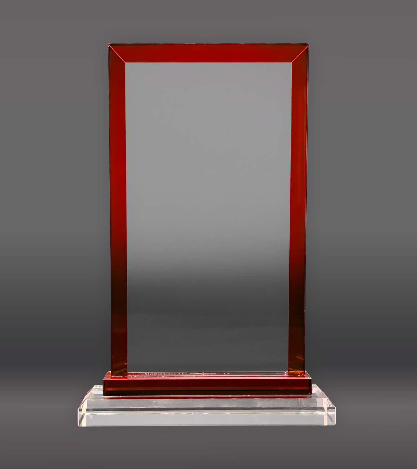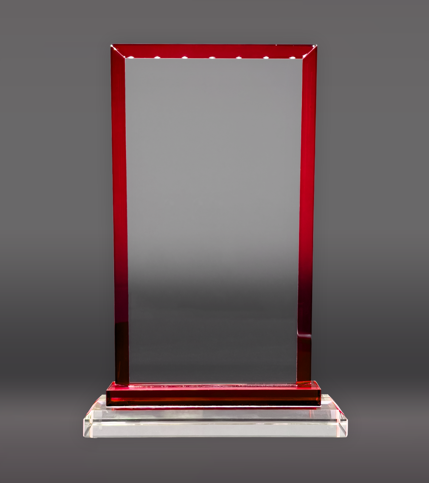 This elegant crystal award features a vivid red border and ample space for detailed laser engraving, combining refined design with clear recognition. Personalize with free and unlimited engraving!