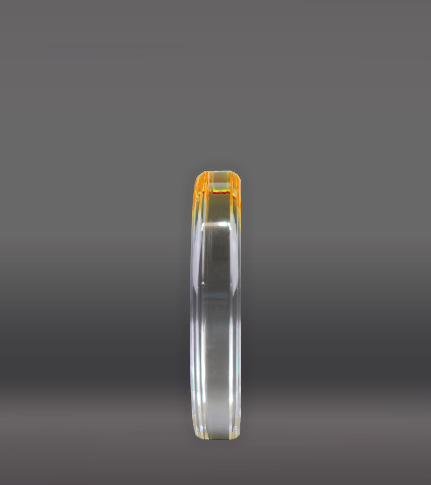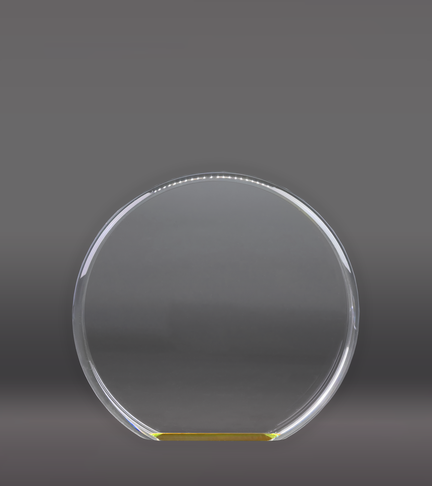 The Color Printed Circle Acrylic Award in gold is a beautifully crafted recognition piece that embodies elegance and excellence. With its classic circular shape and flat bottom, this award stands freely, making it an ideal choice for any display or event.