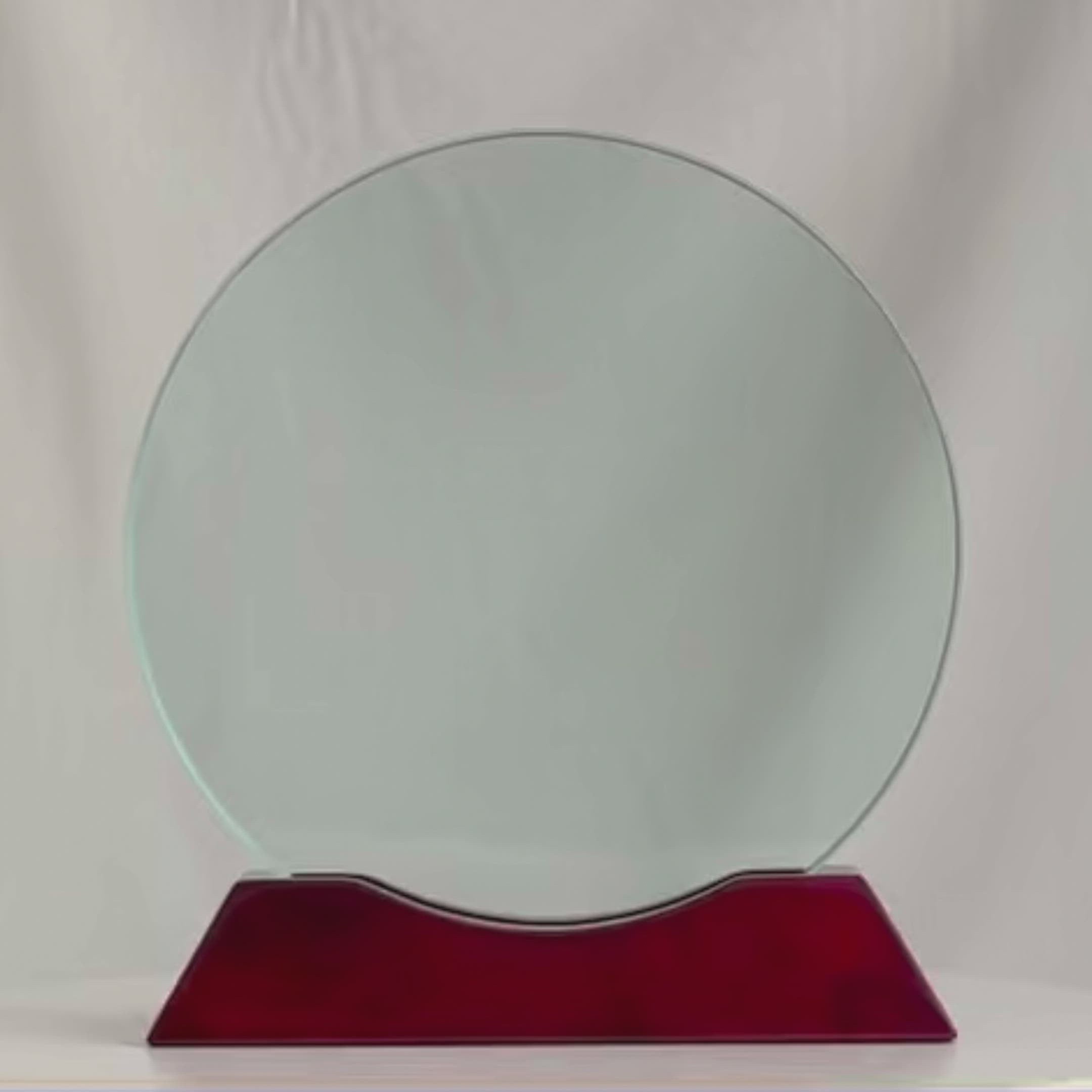 Looking for an award for your hard working team members and employees? This Color Printed Rosewood Circle Glass Award is the perfect choice! Its crisp circle glass lays perfectly on the gloss finished rosewood base, making it a flawless addition to our collection of corporate awards. Take advantage of our free unlimited color printing and customize with your text or upload your logo!