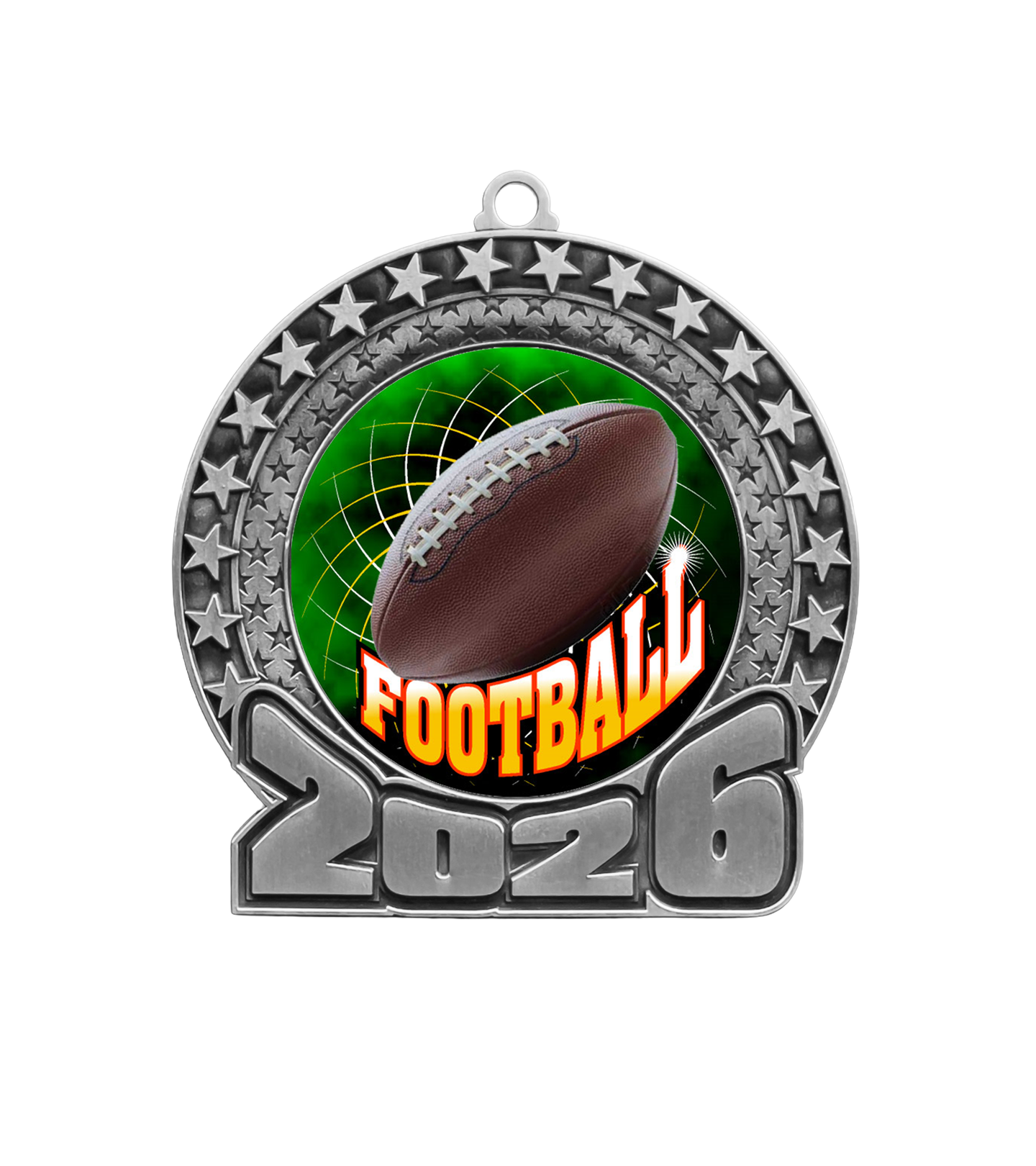 Our 2026 Football Insert Medals are a Low Priced Custom Medal that can be customized with any one of our football stickers. This 2026 medal comes with a laminated insert sticker. Make 2026 a year defined by victory and achievement.