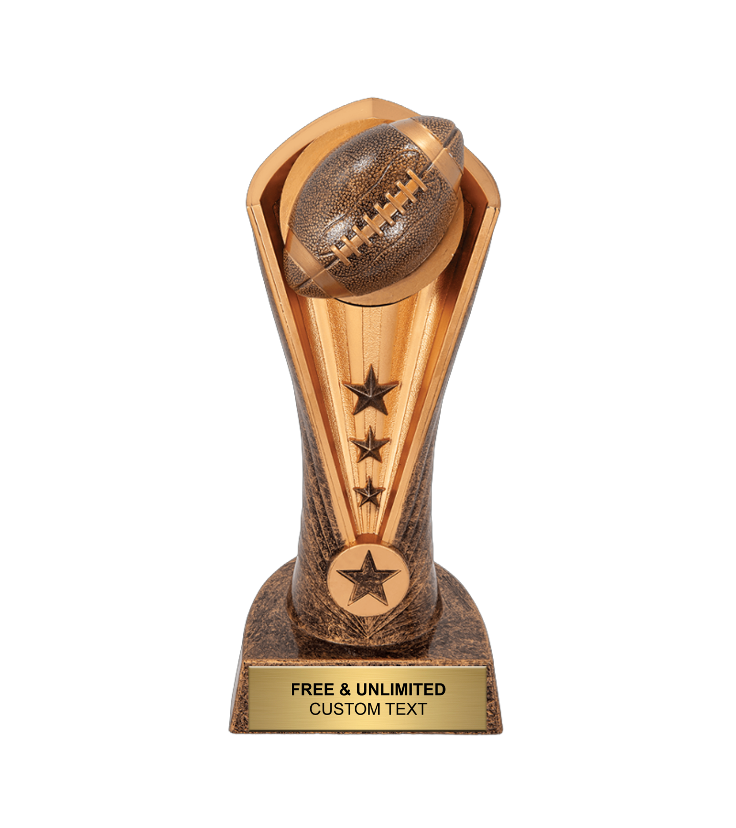 The Football Cobra Award comes in Five sizes, making this a great resin trophy as well as a great all around purchase for a variety of ages and rankings for your Football championship ceremonies. The Football Cobra Award is unique enough to stand out from the rest of the trophies on your league shelf. Give the team something exciting this year - they deserve it!