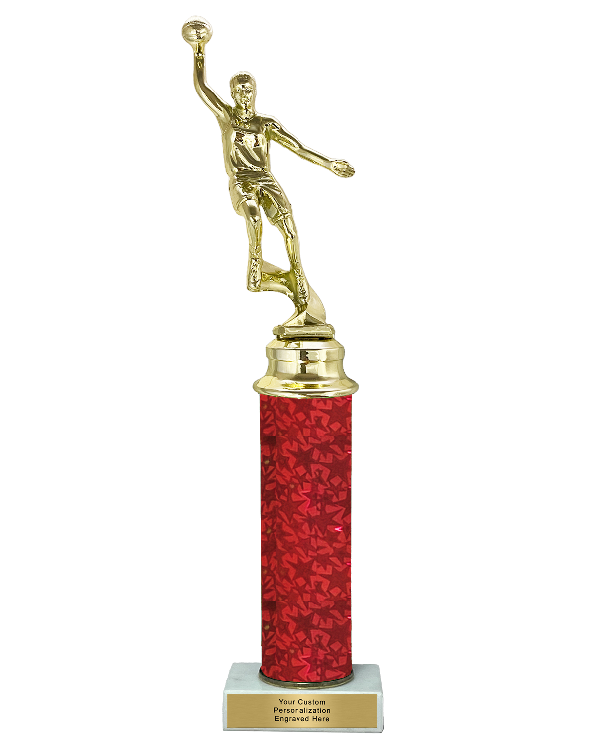 Featuring a Cosmic column design, these StarBlast Female Basketball Trophies are great for bringing your team together. Choose from Standout colors Red, Blue, and Green Making your Trophy shine Bright.