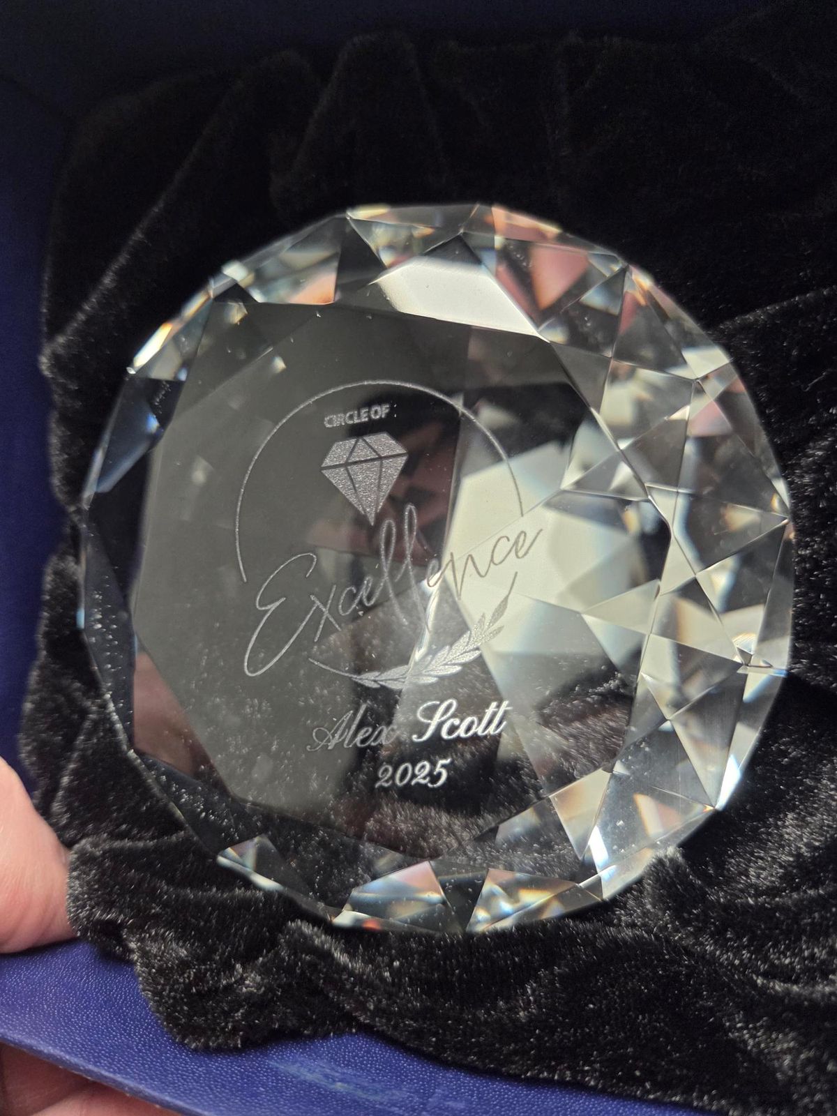 We strayed from our usual Premium Curved Glass Plaque Jade for some special awards, and these did not disappoint! They are STUNNING! A whole handful, glistening, and nestled in a beautiful black velvet lined deep blue box. I mean the presentation is just wow. The personalization was perfect, as usual. Thanks, K2Awards, I'm very excited to give these out!